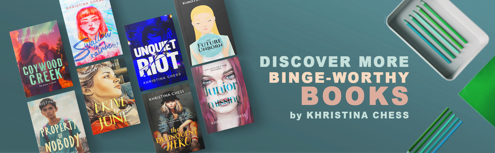 Khristina Chess is the award-winning author of several young adult novels, including The Cutting Edge of Friendship, Hollow Beauty, The Delinquent Hero, Junior Missing, and Unquiet Riot. She tackles tough teen topics and writes binge-worthy books across multiple genres, including contemporary, thriller, mystery, and adventure.